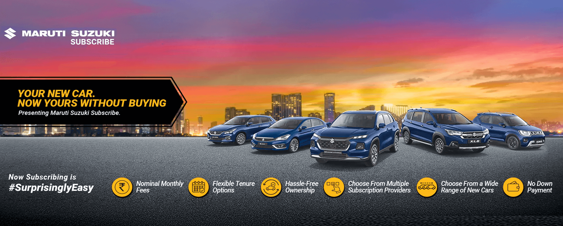 Maruti Suzuki Subscribe enables all customers to enjoy driving their preferred Maruti Suzuki cars without having to deal with all the financial responsibilities that come with owning a car. All you need to do is opt for a monthly subscription plan at a fixed monthly fee, which includes the routine maintenance and insurance costs, and choose a flexible tenure. At Venkat in, , Hasaan, all Hatchback, Sedan, SUV, the MUV models line-up includes Alto K10, Celerio, Dzire, Eeco, Ertiga, Swift, S-Presso, Brezza, Victoris, WagonR. Here, you will enjoy Maruti Suzuki Subscribe benefits such as:
